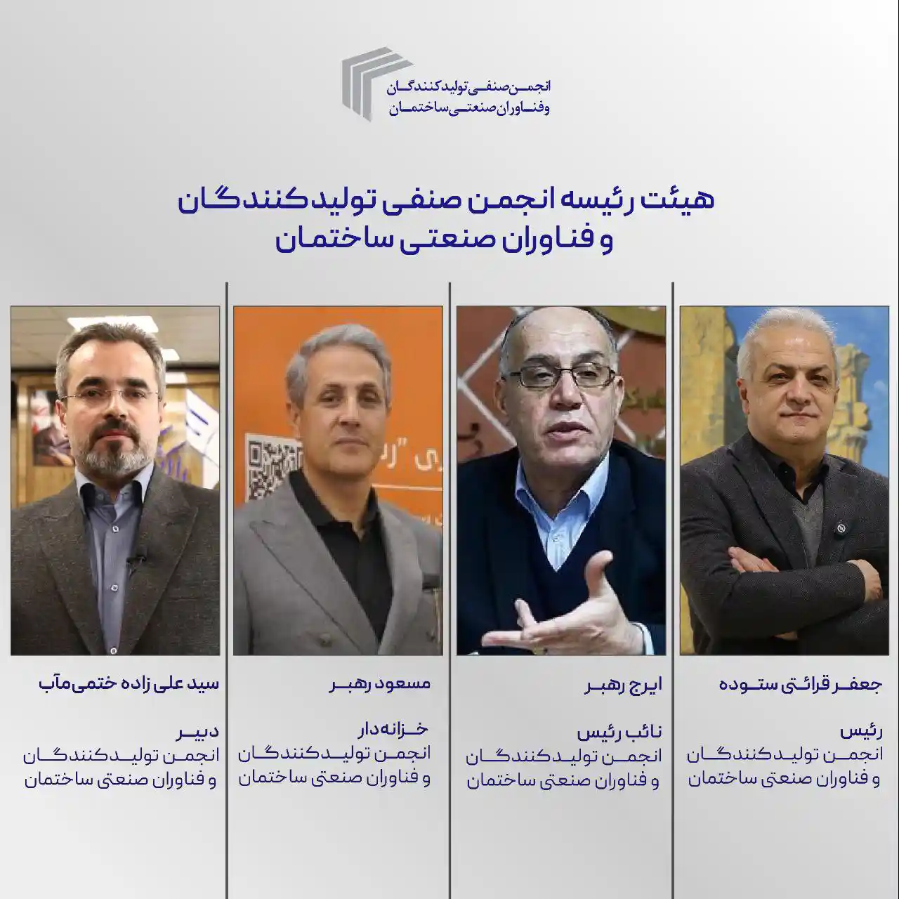 اعضای اصلی ، هیئت مدیره و رئیس کمسیون انجمن تولیدکنندگان و فناوران صنعتی ساختمان به صورت کامل معرفی میشوند.